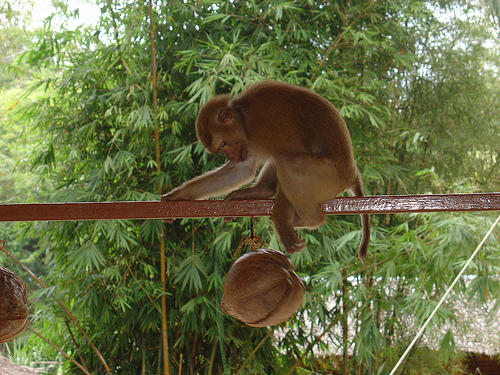 Monkeys are caught for food in certain parts of the world using Coconuts some way up a tree tied to the side of it. A hole is cut into the side of the Coconut just big enough for the monkey’s hand to fit into. There is rice put inside the coconut for the monkey to try to grab.